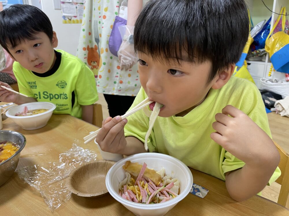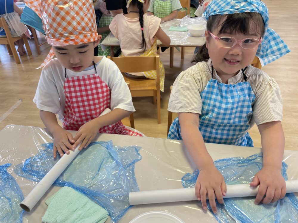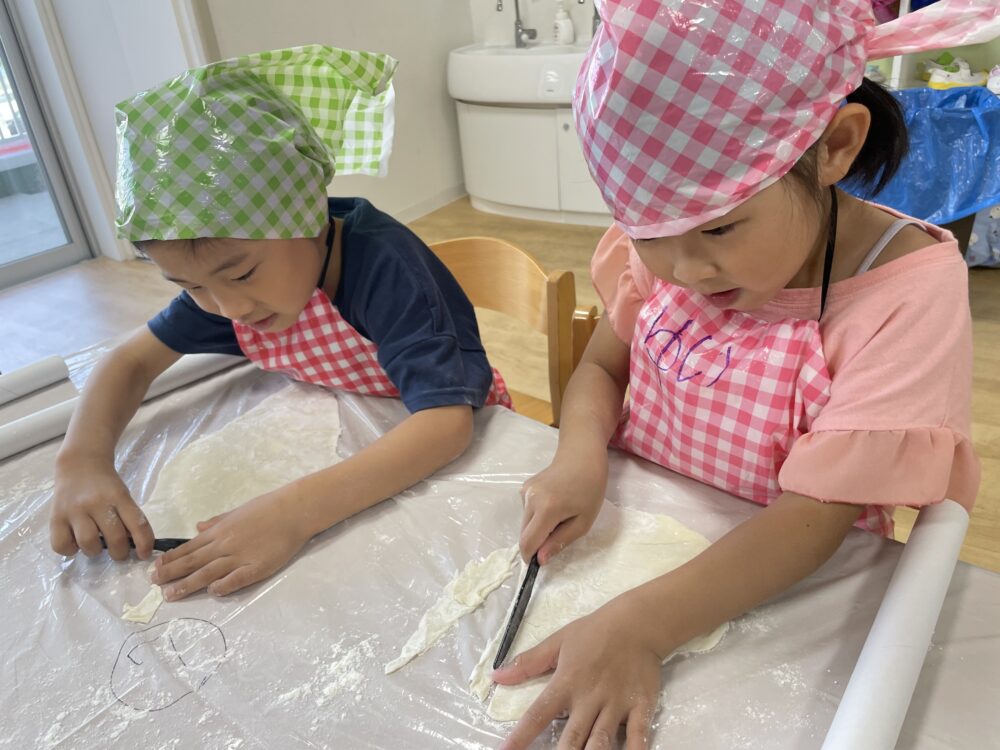 切ることが難しかったですが、細長いうどんや短いうどんなど様々な形のうどんが完成しました😋食べるのが楽しみだね❣️