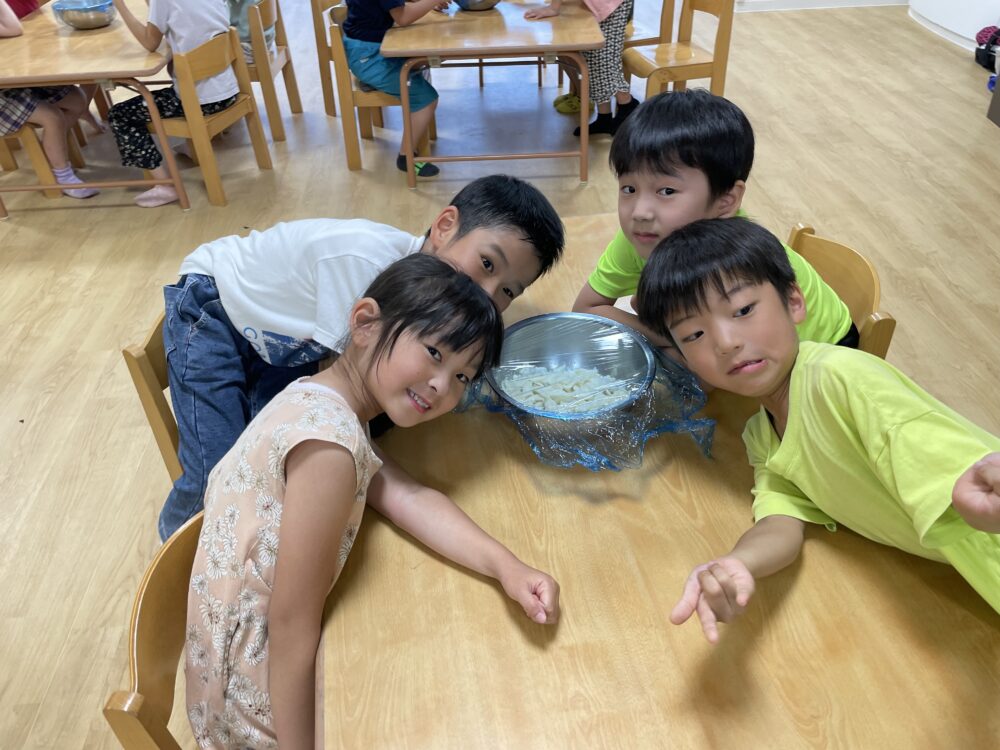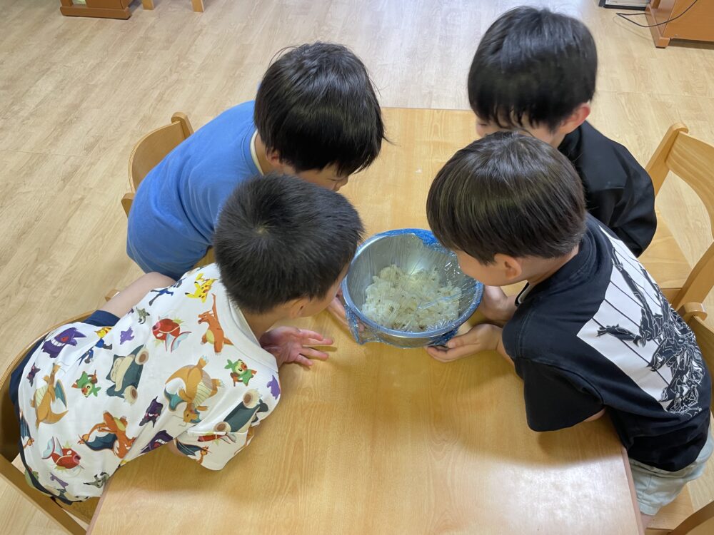 茹で上がったうどんに興味津々☺️本当にうどんができたぁーと大喜びでした😁✨