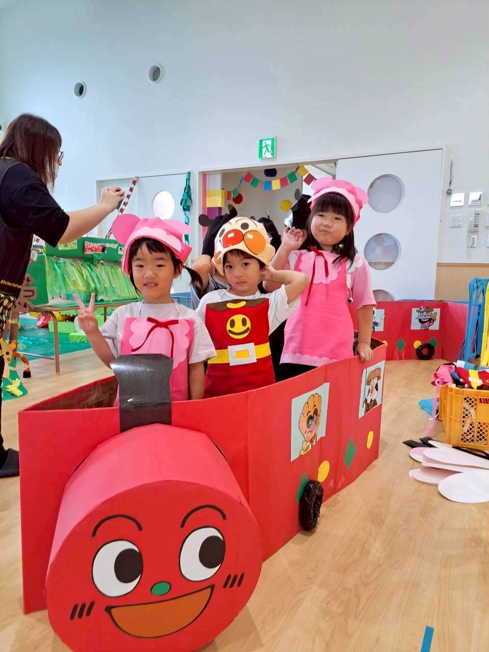 今にも飛びだしそうなかわいいとんぼさんの次は、以上児さんの入場です🚂