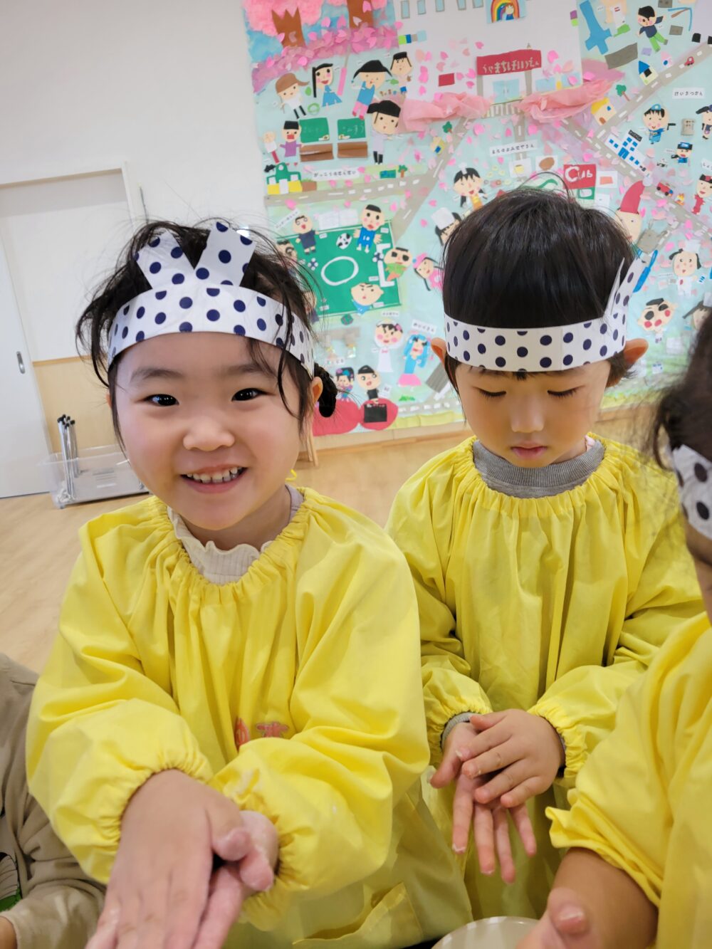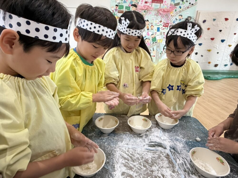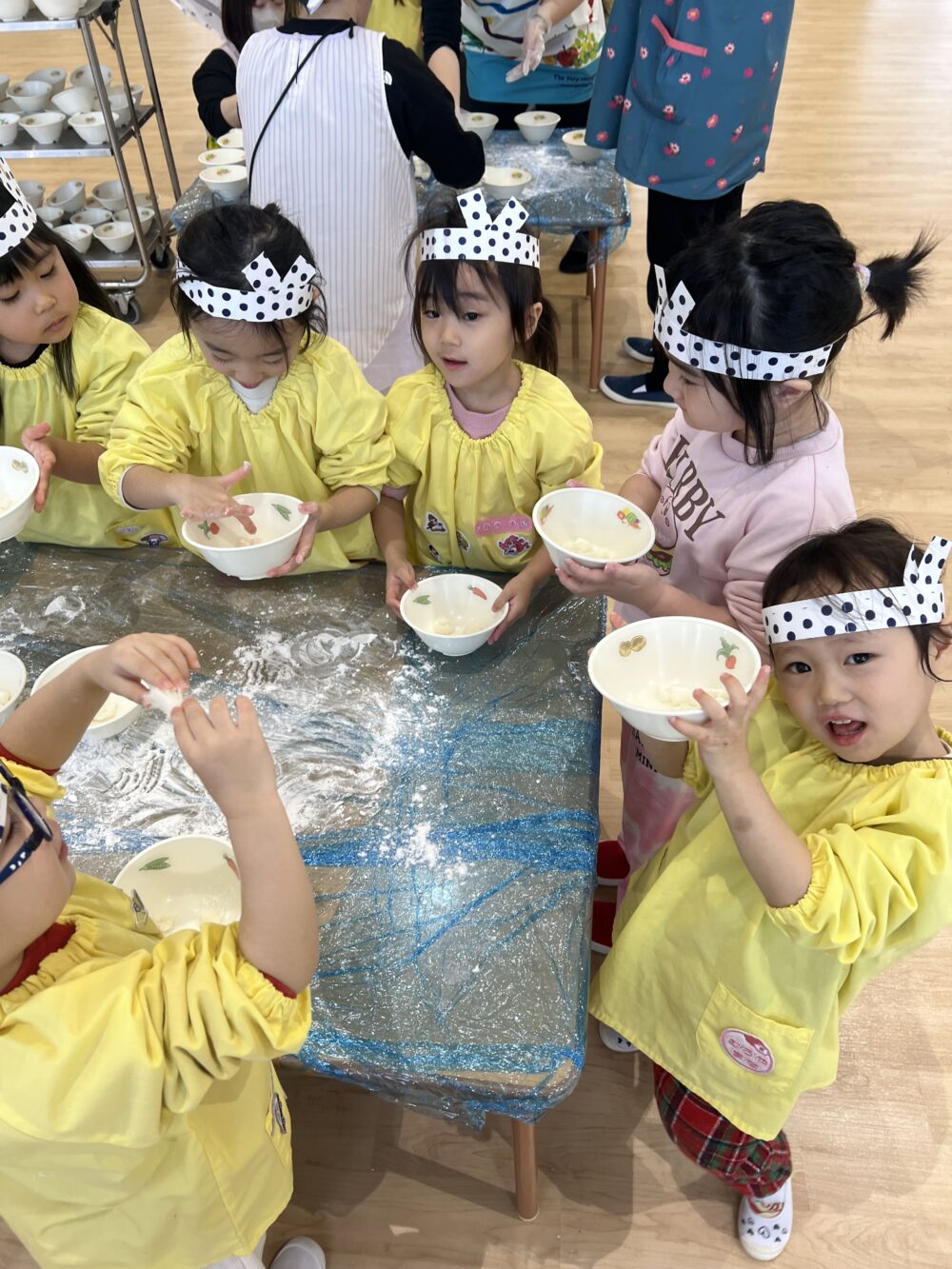 各クラスごとに、食べやすいサイズに丸める作業をしました😋!