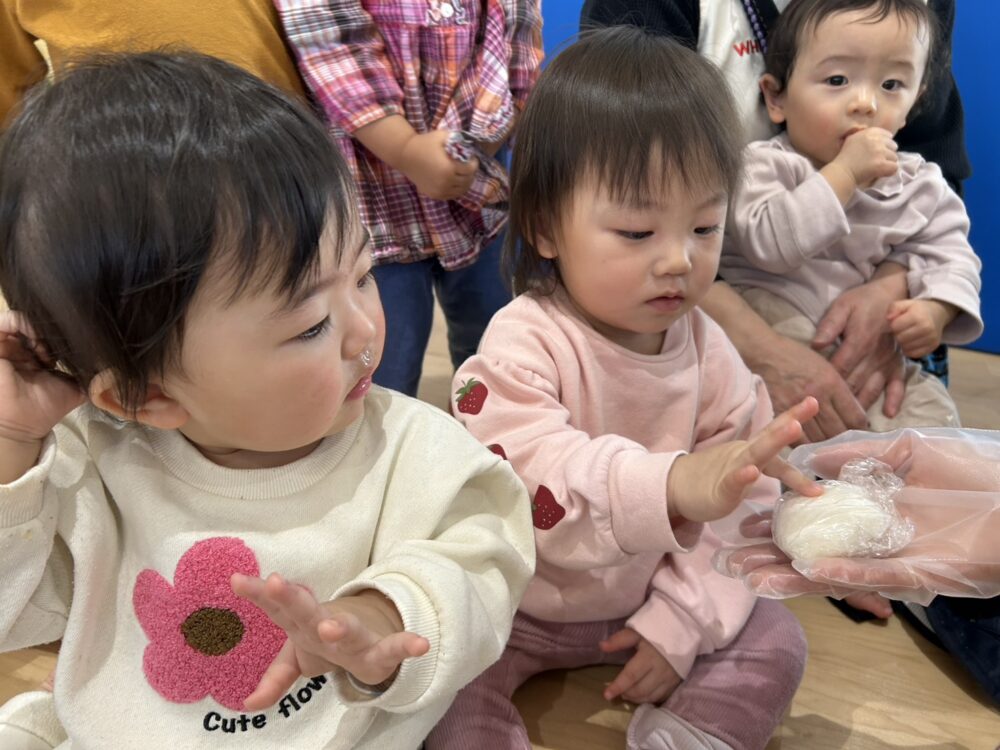 未満時のお友達はまだお餅を食べれない子もいるので、丸めたお餅を見せてもらいましたよ🥰