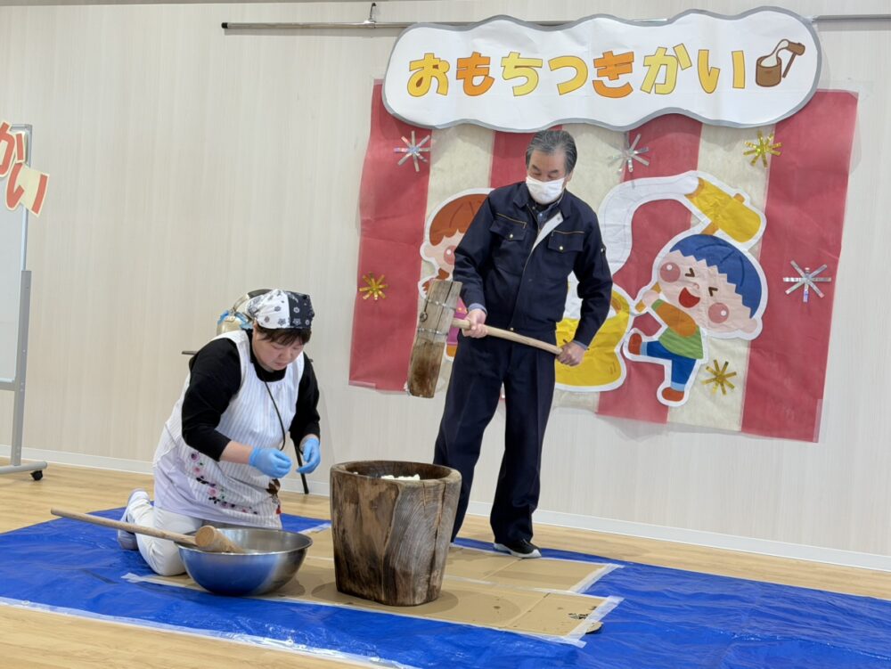 お餅つきでは、田中さんが最初に力を込めて、お餅をぺったん‼️