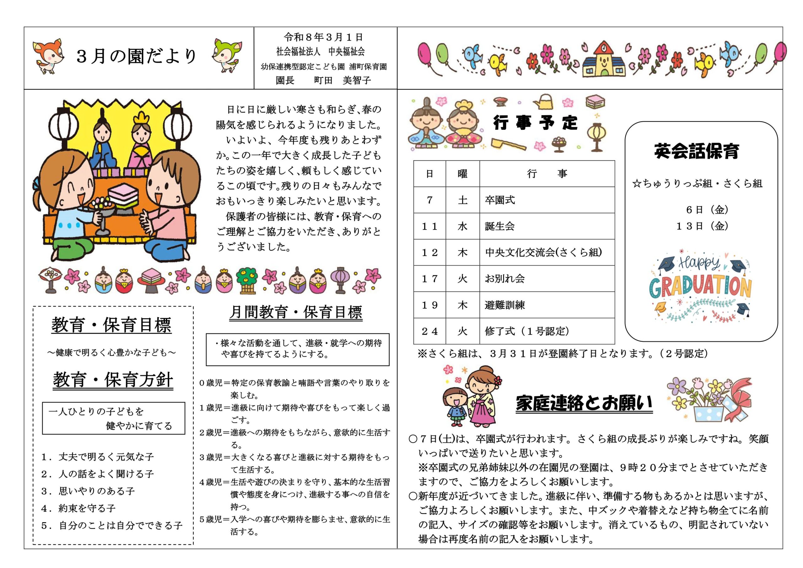 令和7年度 3月園だより