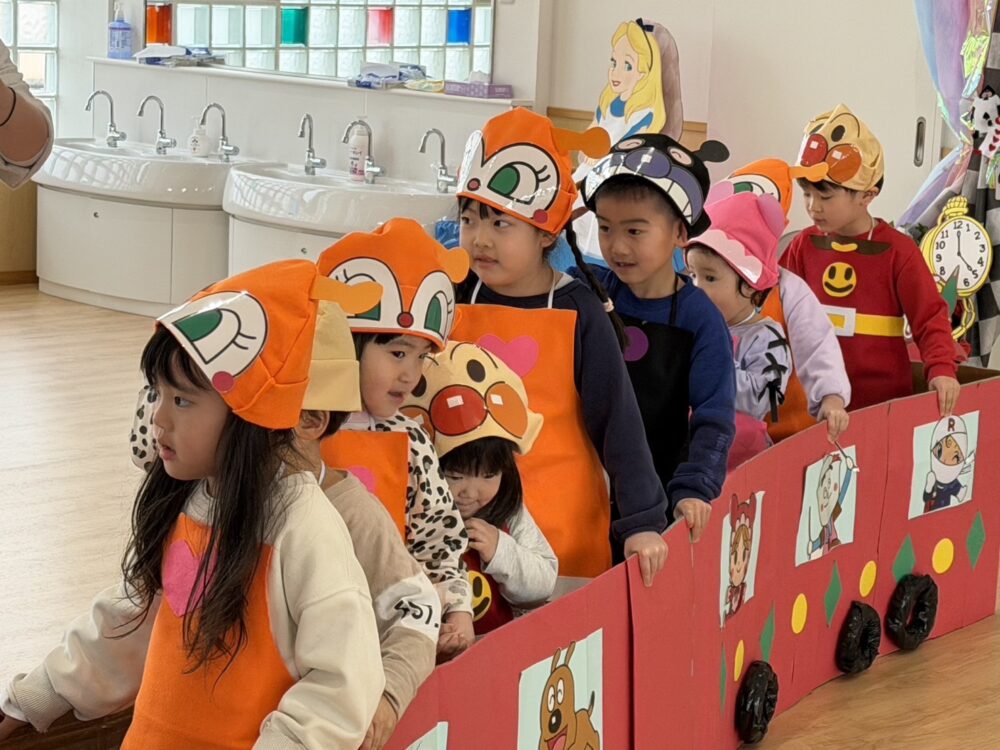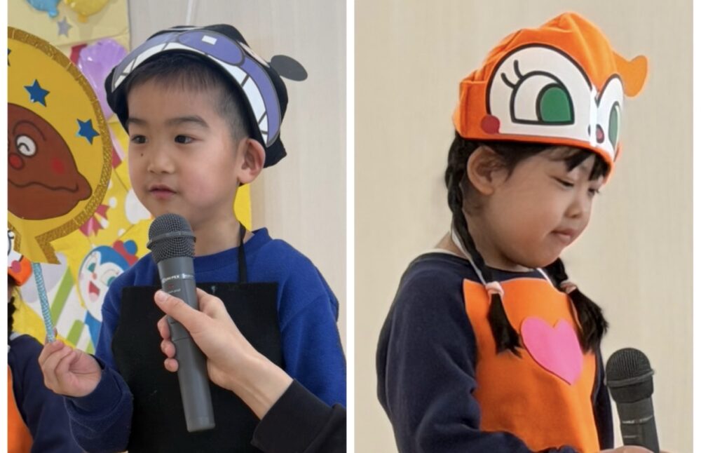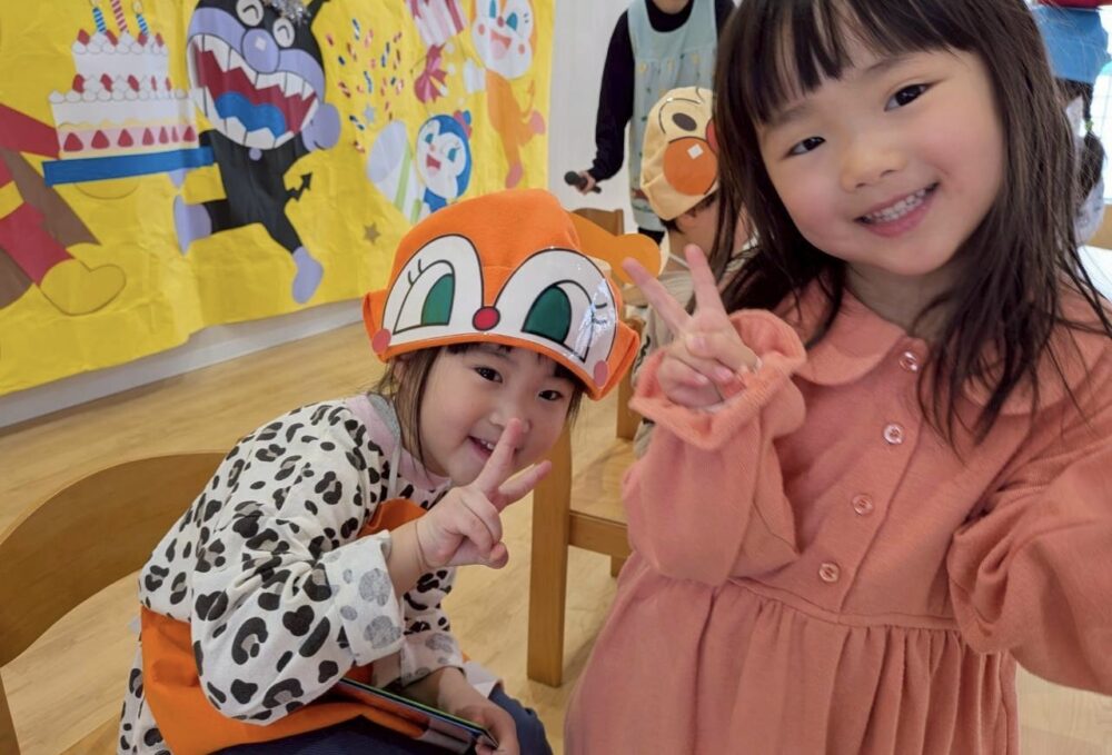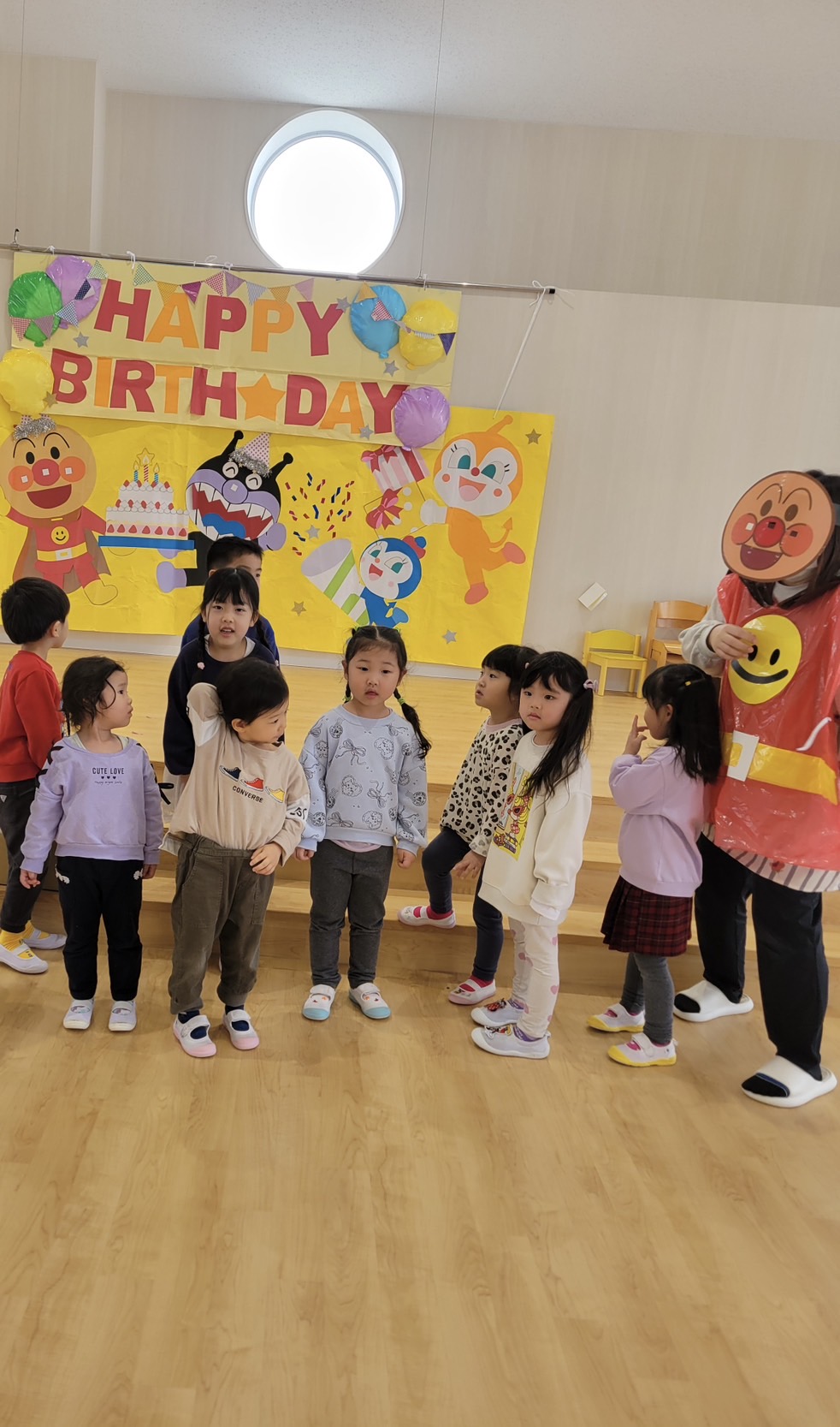 写真を撮った後は、バイキンマンに取られてしまったケーキを取り戻す為、登場したアンパンマンと一緒にクイズに挑戦💌正解するたびに文字カードを集め、誕生児のお友達がパネルに貼って「ハッピーバースデー」を完成させ、みんなで楽しくお祝いしました🎂💞