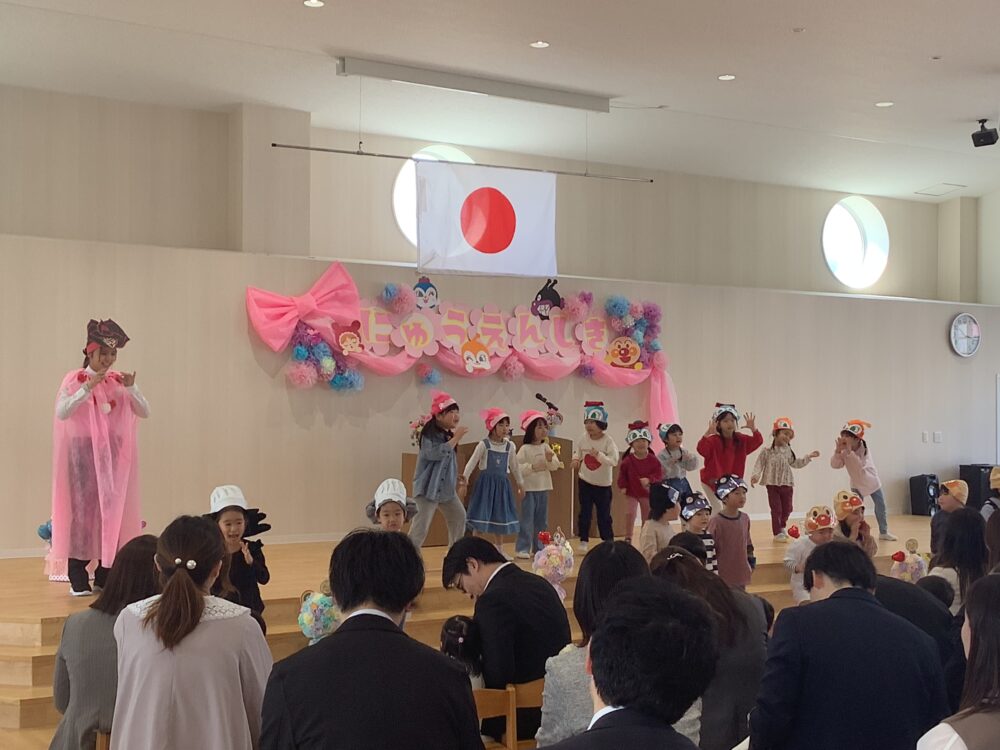 さくら組のお兄さんお姉さんが、アンパンマンのキャラクターになって、お祝いの言葉や歌と踊りで新入園児を歓迎してくれました🥳🫧